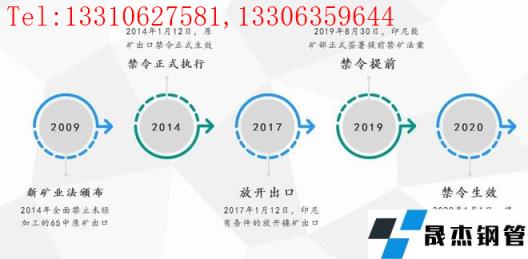 2014~2016年印尼政府明確禁止紅土鎳礦出口,2017年后有條件放寬出口限制,允許在一定條件下出口鎳含量在1.7%以下的鎳礦出口,后于2020年全面禁止鎳礦出口。