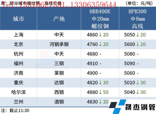 ◎上海:15日早盤建材市場價格下跌20?,F螺紋4790-4830,西城抗震4820,其他4650-4710,興鑫抗震4720,聯鑫黃??拐?730,盤螺4930-5050,高線亞新4840。(單位:元/噸)
