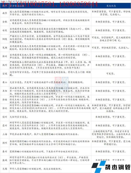 附:馬鞍山周邊城市政策以及發運狀態