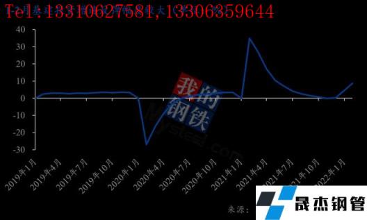 房地產(chǎn)數(shù)據(jù)表現(xiàn)超預(yù)期,而且改善程度之大可能是大多數(shù)人未預(yù)料到的。全國房地產(chǎn)開發(fā)投資同比增長3.7%,施工面積同比增長1.8%;商品房銷售面積同比下降9.6%,新開工面積同比下降12.2%。去年12月,施工面積和新開工面積同比增速均降至-30%以下,此次施工面積同比轉(zhuǎn)正,且商品房銷售面積和新開工面積同比降速收窄幅度大。另外,竣工面積同比增速確意外地轉(zhuǎn)負(fù)。這些數(shù)據(jù)與我們觀察到的高頻數(shù)據(jù)和得到的調(diào)研結(jié)論(見附錄)表現(xiàn)具有較大差異。同時,國房景氣指數(shù)已經(jīng)止住自去年5月以來的下跌趨勢,1-2月該指數(shù)環(huán)比去年12月略微回升。我們提示,國房景氣指數(shù)是觀察房地產(chǎn)行業(yè)和厚壁無縫鋼管價格的重要先行指標(biāo),若該指數(shù)反映情況真實(shí),房地產(chǎn)行業(yè)有望在2季度末之前“提前”企穩(wěn),或?qū)癖跓o縫鋼管價格形成一定的支撐。