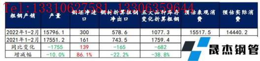 綜上所述,1-2月粗鋼實(shí)際消費(fèi)同比降幅僅為5%,明顯高于市場預(yù)期。但從后期供需預(yù)估表現(xiàn)來看,厚壁無縫鋼管復(fù)產(chǎn)節(jié)奏或高于需求釋放力度,進(jìn)而使得消費(fèi)承壓,價(jià)格上漲難度加大。