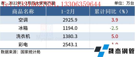 免責聲明:本網站(山東聊城晟杰無縫鋼管廠m.cars-guide.cn)刊載的“統計局:1-2月中國四大家電產量3增1降”等均源于網絡,版權歸原作者所有,且僅代表原作者觀點,本文所載信息僅供參考。轉載僅為學習與交流之目的,如無意中侵犯您的合法權益,請及時聯系刪除。本網站刊登此篇文章并不意味著本站贊同其觀點或證實其內容的真實性,我們不對其科學性、嚴肅性等作任何形式的保證。如果侵犯了您的版權,請盡快聯系我們予以撤銷,謝謝合作!