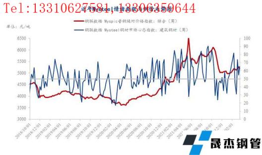 具體各品種指數來看,3月18日建筑厚壁無縫鋼管情緒指數為65.03,較3月11日回升10.41;熱軋板卷情緒指數為59.13,較3月11日回落4.26;冷軋板卷情緒指數為57.73,較3月11日回落1.18;中厚板情緒指數為67.42,較3月11日回落8.78;結構鋼情緒指數為53.88,較3月11日回升11.9;工業線材情緒指數為54.66,較3月11日回落17.04;鍍鋅板卷情緒指數為54.88,較3月11日回落4.84;焊接厚壁鋼管情緒指數為71.19,較3月11日回升29.72;無縫厚壁鋼管情緒指數為64.21,較3月11日回升19.05;帶鋼情緒指數為69.66,較3月11日回升14.46。