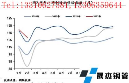 鋼鐵是終端制造業(yè)的重要生產(chǎn)原材料,以鋼鐵消費(fèi)趨勢(shì)為觀測(cè)視角可以較為準(zhǔn)確的判斷下游制造業(yè)發(fā)展?fàn)顩r。2月鋼鐵業(yè)供給指數(shù)為146.92,同比下降5.26,環(huán)比下降2.86%。北方地區(qū)在采暖季和冬奧會(huì)環(huán)保影響下,厚壁無縫鋼管產(chǎn)量管控依然嚴(yán)格。據(jù)統(tǒng)計(jì),2月全國粗鋼產(chǎn)量6738.5萬噸,日均產(chǎn)量240.66萬噸,環(huán)比減少9.79萬噸,降幅3.91%,同比下降13.86%。消費(fèi)方面,五大品種厚壁無縫鋼管消費(fèi)環(huán)比下降19.63%,同比下降4%。具體來看,房地產(chǎn)資金緊張雖有緩解,但受季節(jié)影響,用鋼量繼續(xù)下降,建筑厚壁無縫鋼管表觀消費(fèi)量環(huán)比下降38%。制造業(yè)方面,受春節(jié)和疫情干擾因素影響,2月份,制造業(yè)企業(yè)復(fù)工復(fù)產(chǎn)較晚,實(shí)際用鋼消費(fèi)下降,其中熱卷消費(fèi)同比下降7.4%,環(huán)比下降8.2%。
