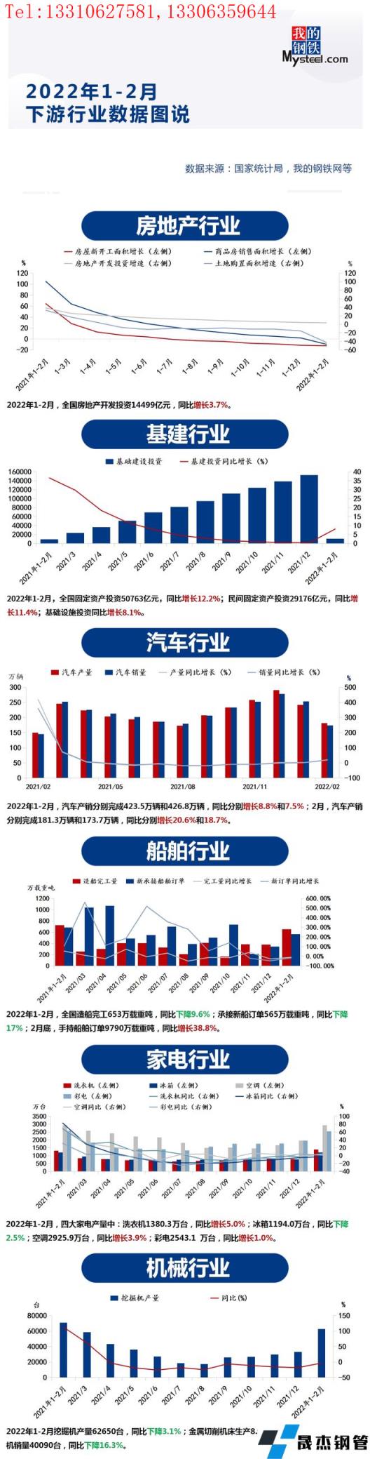 匯總了2022年1-2月部分下游用鋼行業(yè)的運(yùn)行情況。