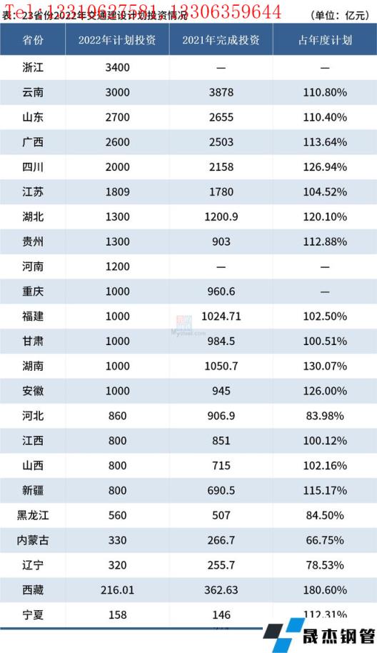 免責聲明:本網站(山東聊城晟杰無縫鋼管廠m.cars-guide.cn)刊載的“23省份2022年交通建設計劃投資近3萬億元”等均源于網絡,版權歸原作者所有,且僅代表原作者觀點,本文所載信息僅供參考。轉載僅為學習與交流之目的,如無意中侵犯您的合法權益,請及時聯(lián)系刪除。本網站刊登此篇文章并不意味著本站贊同其觀點或證實其內容的真實性,我們不對其科學性、嚴肅性等作任何形式的保證。如果侵犯了您的版權,請盡快聯(lián)系我們予以撤銷,謝謝合作!