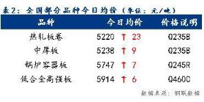 今日全國(guó)部分品種均價(jià)上漲,整體漲幅為6~23元/噸。