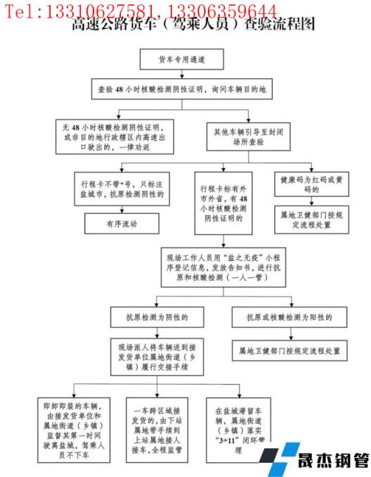 就當前嚴峻的疫情防控需要,鹽城市內各公路查驗點迅速地全面啟動疫情防控通道查驗工作,凡是進入車輛,“逢車必查,逢人必驗”,并就此出臺了高速公路、國省干線貨車查驗管理的詳細細則。由此,鹽城市各厚壁無縫鋼管市場及碼頭港口貨物運輸受到管制,筆記就部分商戶做簡單了解,針對近期情況做簡單匯總。