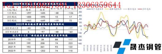 據調研跟蹤,目前區域間資源流動的頻率、主動性、體量較往年相比明顯下降,主要原因在于南下利潤倒掛的時間周期占比較高、全國范圍內執行能耗雙控導致各區域資源供應均相對有限、以及無縫厚壁鋼管廠家目前趨向增加直供比例三大重要原因。