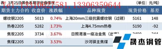 ◎ 據(jù)調(diào)研,截止3月24日,211家長(zhǎng)短流程無(wú)縫厚壁鋼管廠家綜合廢鋼比23.37%,周環(huán)比降0.68%;廢鋼消耗總量在282.79萬(wàn)噸,周環(huán)比降6.57萬(wàn)噸;廢鋼庫(kù)存為493.94萬(wàn)噸,周環(huán)比下降9.44萬(wàn)噸。