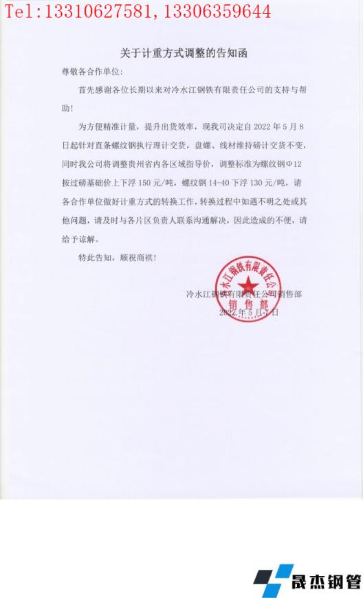 免責(zé)聲明:本網(wǎng)站(山東聊城晟杰無縫鋼管廠m.cars-guide.cn)刊載的“冷水江鋼鐵有限責(zé)任公司關(guān)于對貴州區(qū)域計(jì)重方式調(diào)整的告知函”等均源于網(wǎng)絡(luò),版權(quán)歸原作者所有,且僅代表原作者觀點(diǎn),本文所載信息僅供參考。轉(zhuǎn)載僅為學(xué)習(xí)與交流之目的,如無意中侵犯您的合法權(quán)益,請及時(shí)聯(lián)系刪除。本網(wǎng)站刊登此篇文章并不意味著本站贊同其觀點(diǎn)或證實(shí)其內(nèi)容的真實(shí)性,我們不對其科學(xué)性、嚴(yán)肅性等作任何形式的保證。如果侵犯了您的版權(quán),請盡快聯(lián)系我們予以撤銷,謝謝合作!