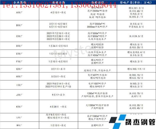 附:江蘇省無縫厚壁鋼管廠家庫存及檢修情況