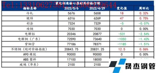 免責聲明:本網站(山東聊城晟杰無縫鋼管廠m.cars-guide.cn)刊載的“家電原材料周報(5.2-5.6)”等均源于網絡,版權歸原作者所有,且僅代表原作者觀點,本文所載信息僅供參考。轉載僅為學習與交流之目的,如無意中侵犯您的合法權益,請及時聯系刪除。本網站刊登此篇文章并不意味著本站贊同其觀點或證實其內容的真實性,我們不對其科學性、嚴肅性等作任何形式的保證。如果侵犯了您的版權,請盡快聯系我們予以撤銷,謝謝合作!
