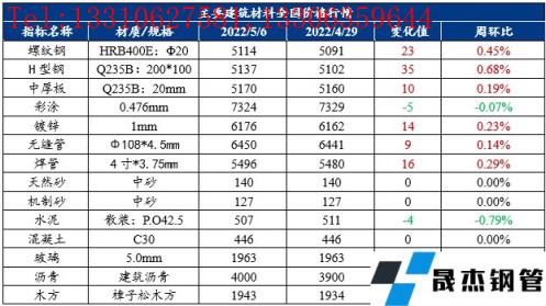 免責聲明:本網站(山東聊城晟杰無縫鋼管廠m.cars-guide.cn)刊載的“建筑原材料周報(4.29-5.6)”等均源于網絡,版權歸原作者所有,且僅代表原作者觀點,本文所載信息僅供參考。轉載僅為學習與交流之目的,如無意中侵犯您的合法權益,請及時聯系刪除。本網站刊登此篇文章并不意味著本站贊同其觀點或證實其內容的真實性,我們不對其科學性、嚴肅性等作任何形式的保證。如果侵犯了您的版權,請盡快聯系我們予以撤銷,謝謝合作!