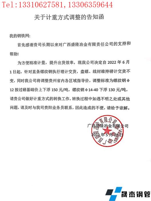 免責聲明:本網站(山東聊城晟杰無縫鋼管廠m.cars-guide.cn)刊載的“廣西盛隆冶金有限公司關于對貴州區域計重方式調整的告知函”等均源于網絡,版權歸原作者所有,且僅代表原作者觀點,本文所載信息僅供參考。轉載僅為學習與交流之目的,如無意中侵犯您的合法權益,請及時聯系刪除。本網站刊登此篇文章并不意味著本站贊同其觀點或證實其內容的真實性,我們不對其科學性、嚴肅性等作任何形式的保證。如果侵犯了您的版權,請盡快聯系我們予以撤銷,謝謝合作!