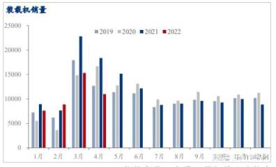 中國工程機械工業協會對22家裝載機制造企業統計,2022年4月銷售各類裝載機10975臺,同比下降40.2%。其中國內市場銷量8050臺,同比下降47%;出口銷量2925臺,同比下降7.44%。
