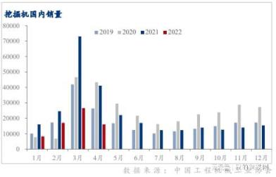 受疫情持續影響、房地產和基建工程開工率低迷等因素影響, 4月份工程機械的核心代表挖掘機銷售量同環比雙降。