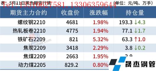 熱軋板卷:5月11日,全國(guó)24個(gè)主要城市4.75mm熱軋板卷均價(jià)5048元/噸,較上個(gè)交易日上漲36元/噸。現(xiàn)貨市場(chǎng)早盤(pán)報(bào)價(jià)回漲,市場(chǎng)成交尚可,盤(pán)中期卷持續(xù)上漲,市場(chǎng)價(jià)格跟漲,漲后成交表現(xiàn)一般,整體觀望情緒濃厚。總體來(lái)看,前期盤(pán)面大幅下跌,導(dǎo)致了市場(chǎng)需求明顯減少,無(wú)縫厚壁鋼管廠家利潤(rùn)接近虧損線,在盤(pán)面反彈回漲之后,市場(chǎng)情緒有所提振,前期部分延遲需求逐步釋放,商家壓力有所減輕。預(yù)計(jì)12日全國(guó)熱軋板卷或?qū)⑵珡?qiáng)運(yùn)行為主。