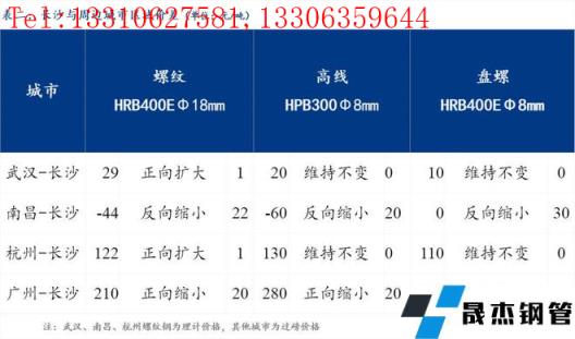 統(tǒng)一為理計單位后,武漢高于長沙29元/噸,南昌低于長沙44元/噸,杭州高于長沙122元/噸,廣州高于長沙210元/噸。