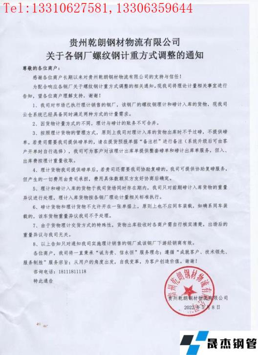 免責聲明:本網站(山東聊城晟杰無縫鋼管廠m.cars-guide.cn)刊載的“貴州乾朗鋼材_無縫鋼管物流有限公司關于各無縫鋼管廠家螺紋鋼計重方式調整的通知”等均源于網絡,版權歸原作者所有,且僅代表原作者觀點,本文所載信息僅供參考。轉載僅為學習與交流之目的,如無意中侵犯您的合法權益,請及時聯系刪除。本網站刊登此篇文章并不意味著本站贊同其觀點或證實其內容的真實性,我們不對其科學性、嚴肅性等作任何形式的保證。如果侵犯了您的版權,請盡快聯系我們予以撤銷,謝謝合作!