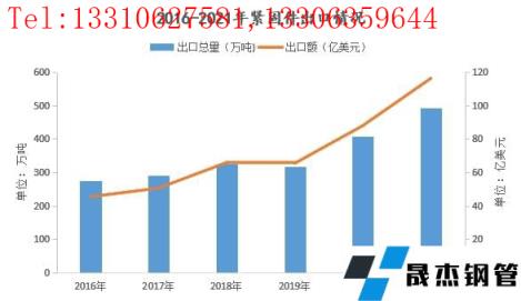 海關(guān)數(shù)據(jù)顯示,自2016年以來,緊固件出口量及出口金額進(jìn)本呈現(xiàn)逐年遞增的情況,其中2018年出口到美國的總量為64萬噸,同比增加4.6萬噸,增幅為7.69%;出口金額為12.5億美元,同比增加2.09億美元,增幅為20.08%。