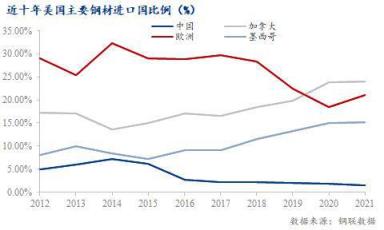 拜登此次提到的取消關(guān)稅,針對的是2018年7月后開始的“懲罰性”關(guān)稅,與鋼鐵關(guān)稅有所區(qū)別,除非宣布同時(shí)取消,否則只會(huì)間接影響國內(nèi)厚壁無縫鋼管市場。根據(jù)美國商務(wù)部公布數(shù)據(jù)顯示,近十年來美國厚壁無縫鋼管進(jìn)口量在2000萬噸—4000萬噸之間,歐洲、加拿大、墨西哥為美國前三大厚壁無縫鋼管進(jìn)口國,而來自中國的進(jìn)口比例并不高。從圖中可以看出,2018年美國加征鋼鐵關(guān)稅以后,來自歐洲的進(jìn)口比例有所下降,加拿大、墨西哥的進(jìn)口比例有所上升,而中國的進(jìn)口比例變化不大。即使后期鋼鐵關(guān)稅取消,國內(nèi)對美厚壁無縫鋼管出口影響有限。