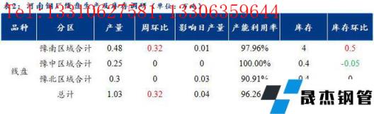 1、調研數據顯示,統計的河南地區10家建筑厚壁無縫鋼管樣本無縫厚壁鋼管廠家中,河南省無縫厚壁鋼管廠家線盤日均產量1.03萬噸,較上周增加0.32萬噸;檢修/限產影響建材日產量為0.04萬噸,產能利用率96.26%,較上周上升29.91%。