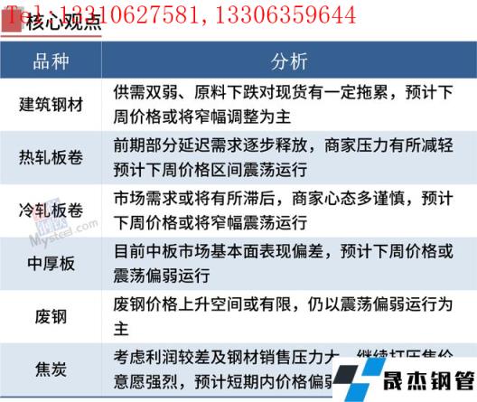 中厚板:5月13日,全國(guó)24個(gè)主要城市20mm普板均價(jià)5229元/噸,較上一交易日下跌7元/噸。期貨走勢(shì)小幅上揚(yáng),市場(chǎng)悲觀情緒稍有緩解,市場(chǎng)交投氛圍表現(xiàn)一般。成交方面,近期市場(chǎng)價(jià)格偏弱運(yùn)行,下游采購(gòu)觀望心態(tài)較濃,操作方面剛需采購(gòu)為主,市場(chǎng)整體需求表現(xiàn)不佳。無(wú)縫厚壁鋼管廠家方面,本周無(wú)縫厚壁鋼管廠家開(kāi)工率81.54%,周環(huán)比持平;無(wú)縫厚壁鋼管廠家產(chǎn)能利用率90.40%,周環(huán)比下降0.52%,在統(tǒng)計(jì)周期內(nèi),未有新增檢修和復(fù)產(chǎn)情況,疊加需求偏弱,市場(chǎng)價(jià)格窄幅下探,無(wú)縫厚壁鋼管廠家生產(chǎn)開(kāi)工動(dòng)力不足。綜合來(lái)看,目前中板市場(chǎng)基本面表現(xiàn)偏差,價(jià)格上升空間受阻,預(yù)計(jì)下周中厚板價(jià)格或震蕩偏弱運(yùn)行。