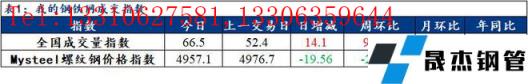 訊:全國建筑厚壁無縫鋼管成交量監測,成交量相對指數來看,全國66.5增14.1,北方53.7增6.5,華東85.6增19.8,南方54.4增12.6。今日螺紋鋼價格指數4957.1,較上一交易日減19.56。