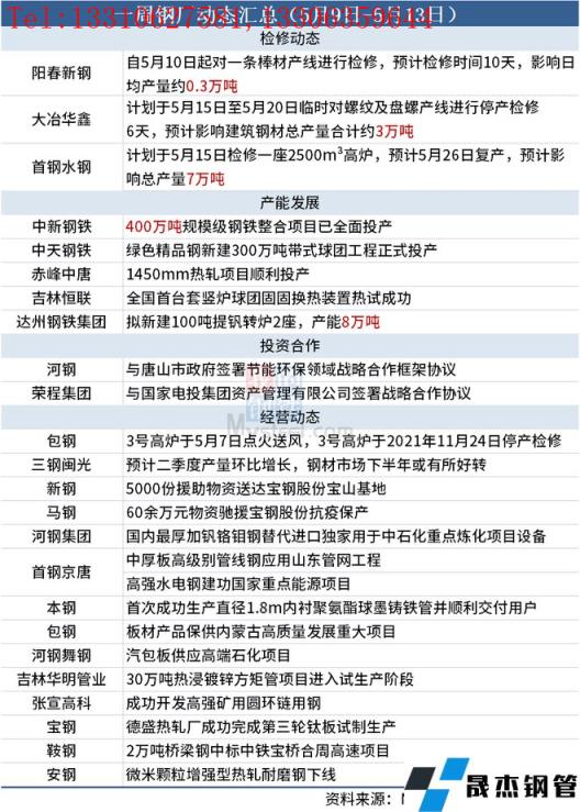 據(jù)不完全統(tǒng)計(jì),本周(5月9日-5月13日)有3家無(wú)縫厚壁鋼管廠家發(fā)布檢修計(jì)劃,具體如下: