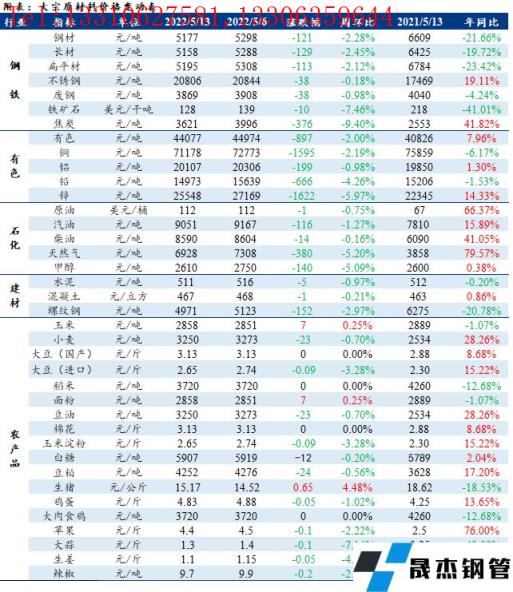 免責聲明:本網站(山東聊城晟杰無縫鋼管廠m.cars-guide.cn)刊載的“周報:大宗工業原材料、能源及農產品價格周報(5.09-5.13)”等均源于網絡,版權歸原作者所有,且僅代表原作者觀點,本文所載信息僅供參考。轉載僅為學習與交流之目的,如無意中侵犯您的合法權益,請及時聯系刪除。本網站刊登此篇文章并不意味著本站贊同其觀點或證實其內容的真實性,我們不對其科學性、嚴肅性等作任何形式的保證。如果侵犯了您的版權,請盡快聯系我們予以撤銷,謝謝合作!
