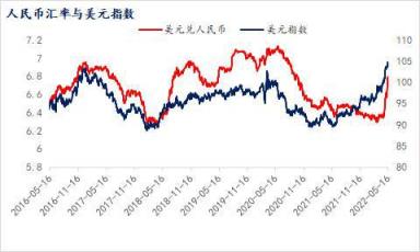 2022年3月,美聯(lián)儲宣布將基準利率上調(diào)25個基點,正式進入加息周期,5月更是宣布一次性加息50個基點,引起了全球資本市場的動蕩,而美元作為全球避險資產(chǎn),在此輪加息過程中不斷走強,截至目前美元指數(shù)年內(nèi)漲幅高達8.57%。相比來看,從今年4月中旬開始,人民幣匯率卻出現(xiàn)連續(xù)大貶值的走勢,其中人民幣離岸匯率從4月18日的6.372快速貶至5月16日的6.79,幅度達到6.3%,在岸匯率同期從6.363貶至5月12日的6.7994,幅度達到6.86%。同期歐元貶值8.2%,日元貶值12.88%,韓幣貶值7.93%,而盧布年初至今對美元升值1.8%,澳元對美元微貶2.4%。從匯率上也可以看出,在全球通脹及美元走強背景下,能源原料出口國如俄羅斯、澳大利亞等國匯率相對堅挺,而產(chǎn)成品出口國如中國、日本、韓國等面臨較大貶值壓力。