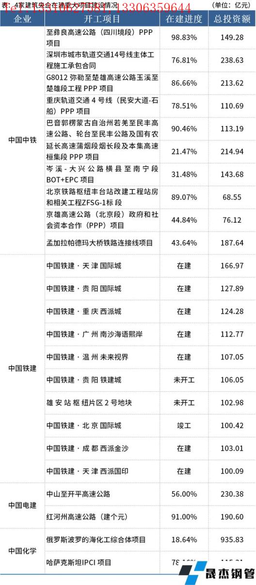 據梳理,中國中鐵、中國鐵建、中國電建、中國化學4家企業公布了在建重大項目情況,具體如下:
