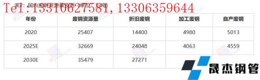 前面提及,國內廢鋼的主要來源為自產廢鋼、加工廢鋼、折舊廢鋼。在廢鋼資源量預測中,自產廢鋼和加工廢鋼主要是根據未來粗鋼產量以及各主要厚壁無縫鋼管消費領域的用鋼量,通過一定的折損比例計算得出,折舊廢鋼資源量則需要充分考慮鋼鐵產品的生命周期,以及達到報廢期限后的實際報廢率及鋼鐵回收率。廢鋼資源量預測是根據此模型計算得出。