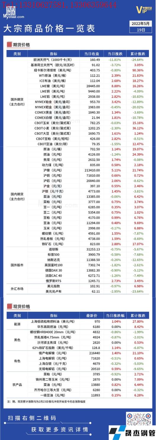 近期,受國際局勢影響,全球金融及大宗商品市場出現較大波動。5月19日,國際金屬、原油上漲,天然氣價格下跌。其中,倫鎳盤中漲幅達11%。