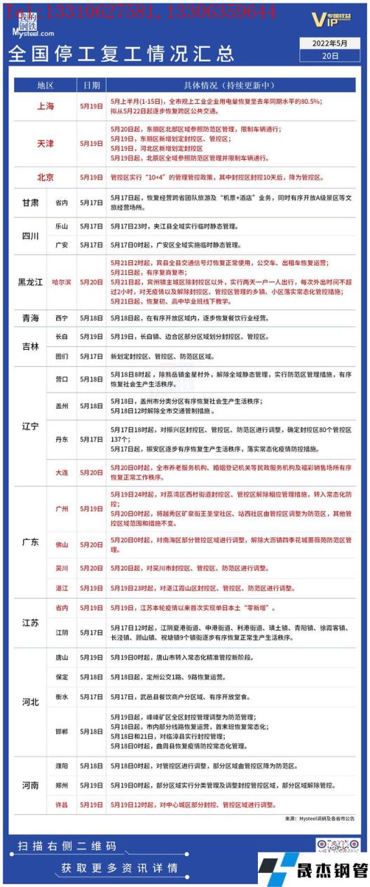 免責聲明:本網站(山東聊城晟杰無縫鋼管廠m.cars-guide.cn)刊載的“疫情影響丨全國停工復工情況匯總(5月20日)”等均源于網絡,版權歸原作者所有,且僅代表原作者觀點,本文所載信息僅供參考。轉載僅為學習與交流之目的,如無意中侵犯您的合法權益,請及時聯系刪除。本網站刊登此篇文章并不意味著本站贊同其觀點或證實其內容的真實性,我們不對其科學性、嚴肅性等作任何形式的保證。如果侵犯了您的版權,請盡快聯系我們予以撤銷,謝謝合作!