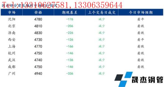 現(xiàn)貨市場動態(tài):23日,全國31個主要城市20mm三級抗震螺紋鋼均價4839元/噸,較上個交易日跌10元/噸;上海螺紋鋼美元計價指數(shù)收于729.78,跌0.08%。具體來看,昨日早盤期螺震蕩運行,部分地區(qū)市場報價小幅上漲,盤中期螺轉弱,成交轉弱,市場情緒較為悲觀,商家多以暗降出貨。午后期螺繼續(xù)走弱,現(xiàn)貨價格進一步走低,全天成交表現(xiàn)清淡。預計今日國內(nèi)建筑厚壁無縫鋼管市場偏弱運行。
