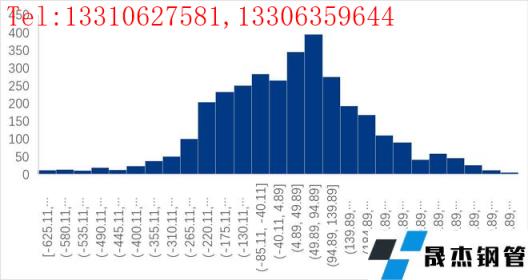 從卷螺差的年度跟蹤數(shù)據(jù)看,期貨市場卷螺差基本落在-200與500的區(qū)間內(nèi)。而回溯兩個品種上市交易來的所有時間段數(shù)據(jù),我們發(fā)現(xiàn),卷螺差值的概率分布基本符合一般正態(tài)分布形態(tài),因此可以進行相關(guān)和回歸等統(tǒng)計分析,可基于統(tǒng)計原理進行相關(guān)套利操作。同時,回溯兩個品種2009年以來現(xiàn)貨市場的價差值,其概率分布圖形狀跟期貨市場價差值大體一致。如圖1、圖2和圖3所示。
