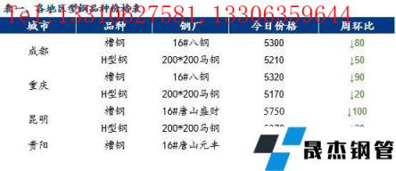 表1:本周西南區域型鋼價格變化匯總(單位:元/數據來源:)