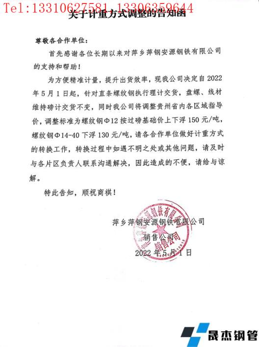 免責聲明:本網站(山東聊城晟杰無縫鋼管廠m.cars-guide.cn)刊載的“萍鄉萍鋼安源鋼鐵有限公司關于對貴州區域計重方式調整的告知函”等均源于網絡,版權歸原作者所有,且僅代表原作者觀點,本文所載信息僅供參考。轉載僅為學習與交流之目的,如無意中侵犯您的合法權益,請及時聯系刪除。本網站刊登此篇文章并不意味著本站贊同其觀點或證實其內容的真實性,我們不對其科學性、嚴肅性等作任何形式的保證。如果侵犯了您的版權,請盡快聯系我們予以撤銷,謝謝合作!