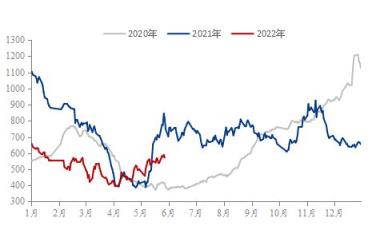 再來(lái)看,2022年1-4月我國(guó)冷軋板(帶)出口總量共計(jì)44.74萬(wàn)噸,年同比降幅高達(dá)86.47%。雖然1-4月份出口數(shù)據(jù)與同期相比均存在較大差異,但環(huán)比數(shù)據(jù)卻是在緩慢增長(zhǎng)。4月冷軋出口價(jià)格窄幅下跌,月環(huán)比跌31美元/噸。從市場(chǎng)反饋看4月下旬受?chē)?guó)內(nèi)價(jià)格震蕩下行,以及國(guó)外需求下降,出口報(bào)價(jià)下跌,出口價(jià)格在931美元/噸左右。從調(diào)研的情況看,近期國(guó)內(nèi)冷軋出口價(jià)格一般,國(guó)外市場(chǎng)需求略有放緩,內(nèi)外價(jià)差利潤(rùn)尚可,國(guó)內(nèi)出口貿(mào)易環(huán)節(jié)積極性一般,預(yù)計(jì)5月冷軋出口價(jià)1000美元/噸以內(nèi)。從預(yù)期數(shù)據(jù)來(lái)看,國(guó)外需求緩慢恢復(fù),預(yù)計(jì)5月出口環(huán)比或繼續(xù)大幅增加。