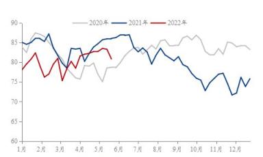 首先,供給端方面,據(jù)調(diào)研顯示,截至2022年5月27日,37家熱軋板卷生產(chǎn)企業(yè)中,無(wú)縫厚壁鋼管廠家產(chǎn)能利用率為80.87%,能夠從圖2可以觀察到2022年1-5月份,熱軋產(chǎn)能利用率是低于2021年同期水平,因此無(wú)縫厚壁鋼管廠家熱軋產(chǎn)量給到市場(chǎng)的供給壓力是在持續(xù)減弱,對(duì)于熱軋價(jià)格起到了一定的支撐作用。再來(lái)看下無(wú)縫厚壁鋼管廠家的冷軋產(chǎn)能利用率, 2020年與2021年冷軋產(chǎn)能利用率均值分別為77.96%與81.05%。截至2022年5月27日,29家冷軋板卷生產(chǎn)企業(yè)中,冷軋產(chǎn)能利用率為83.04%,從年同比數(shù)據(jù)對(duì)比之下,能夠反映出冷軋產(chǎn)能利用率已經(jīng)達(dá)到相對(duì)飽和狀態(tài)。