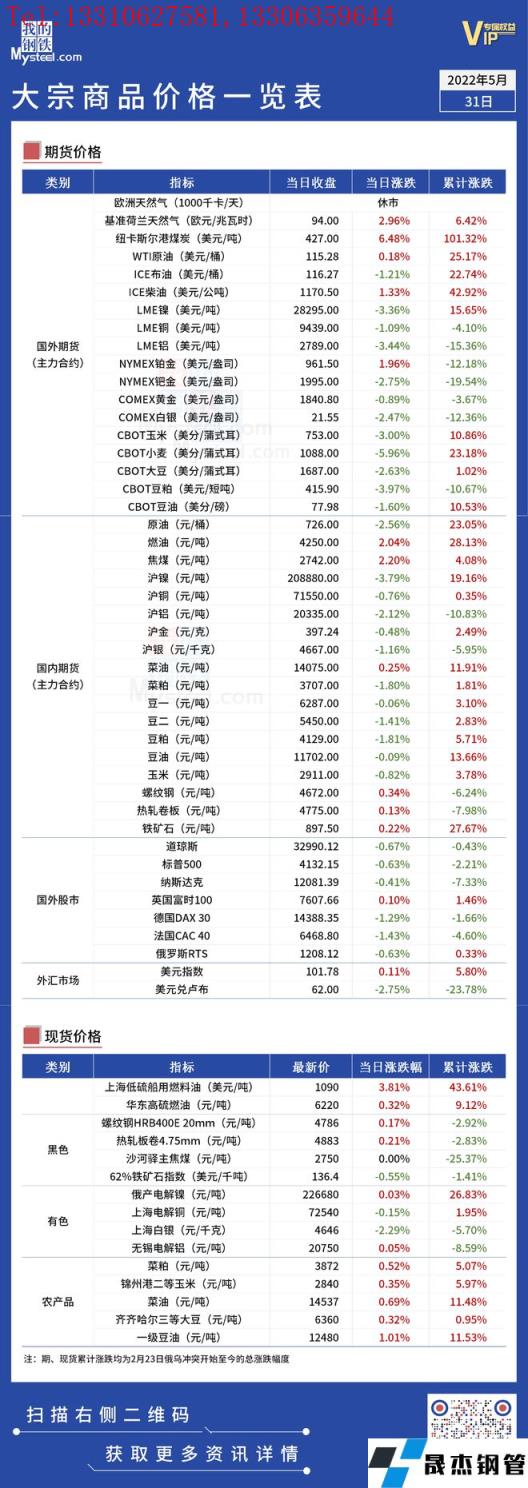 免責(zé)聲明:本網(wǎng)站(山東聊城晟杰無(wú)縫鋼管廠m.cars-guide.cn)刊載的“俄烏局勢(shì)丨大宗商品價(jià)格一覽表(5月31日)”等均源于網(wǎng)絡(luò),版權(quán)歸原作者所有,且僅代表原作者觀點(diǎn),本文所載信息僅供參考。轉(zhuǎn)載僅為學(xué)習(xí)與交流之目的,如無(wú)意中侵犯您的合法權(quán)益,請(qǐng)及時(shí)聯(lián)系刪除。本網(wǎng)站刊登此篇文章并不意味著本站贊同其觀點(diǎn)或證實(shí)其內(nèi)容的真實(shí)性,我們不對(duì)其科學(xué)性、嚴(yán)肅性等作任何形式的保證。如果侵犯了您的版權(quán),請(qǐng)盡快聯(lián)系我們予以撤銷(xiāo),謝謝合作!