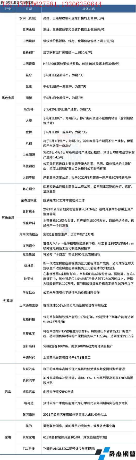 寧德時代上海基地在建項目將于6月1日復工;五礦稀土2022年公司計劃實現(xiàn)營業(yè)收入34.34億;欣旺達擬投入23億元建設年產(chǎn)3.1億只高性能圓柱鋰離子電池項目;龍佰集團將緊盯“十四五”市值1000億元發(fā)展目標。具體情況如下: