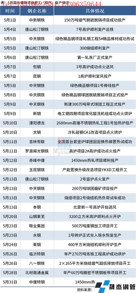 免責聲明:本網站(山東聊城晟杰無縫鋼管廠m.cars-guide.cn)刊載的“5月國內29個鋼鐵項目開工、投產或復產”等均源于網絡,版權歸原作者所有,且僅代表原作者觀點,本文所載信息僅供參考。轉載僅為學習與交流之目的,如無意中侵犯您的合法權益,請及時聯系刪除。本網站刊登此篇文章并不意味著本站贊同其觀點或證實其內容的真實性,我們不對其科學性、嚴肅性等作任何形式的保證。如果侵犯了您的版權,請盡快聯系我們予以撤銷,謝謝合作!
