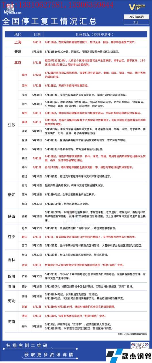 疫情影響丨全國停工復工情況匯總(6月1日)