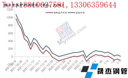 目前電弧爐無縫厚壁鋼管廠家仍虧損,僅谷電存在微利,減產、停產無縫厚壁鋼管廠家數量繼續增加。
