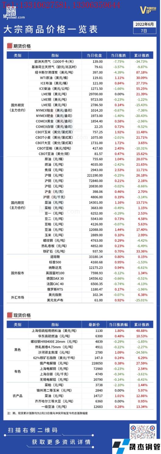 免責聲明:本網站(山東聊城晟杰無縫鋼管廠m.cars-guide.cn)刊載的“俄烏局勢丨大宗商品價格一覽表(6月7日)”等均源于網絡,版權歸原作者所有,且僅代表原作者觀點,本文所載信息僅供參考。轉載僅為學習與交流之目的,如無意中侵犯您的合法權益,請及時聯系刪除。本網站刊登此篇文章并不意味著本站贊同其觀點或證實其內容的真實性,我們不對其科學性、嚴肅性等作任何形式的保證。如果侵犯了您的版權,請盡快聯系我們予以撤銷,謝謝合作!