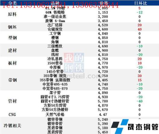 表:6月8日唐山鋼市主要品種價(jià)格一覽(單位:元/噸)