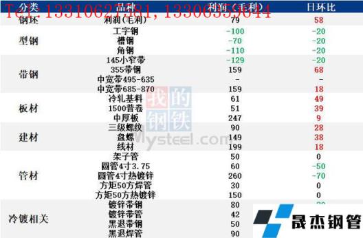 表:6月8日唐山鋼市主要品種利潤(rùn)一覽(單位:元/噸)